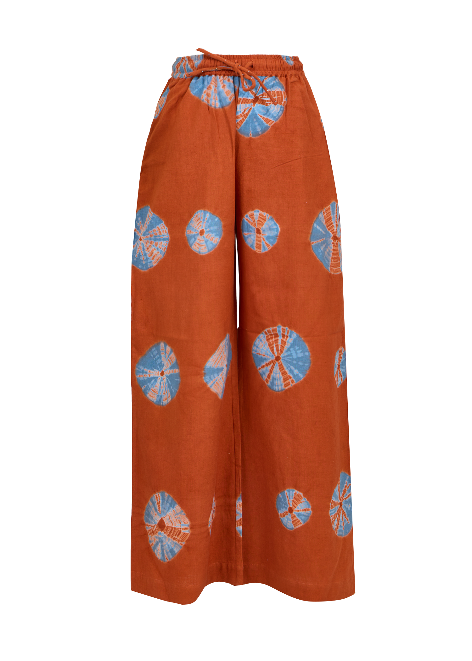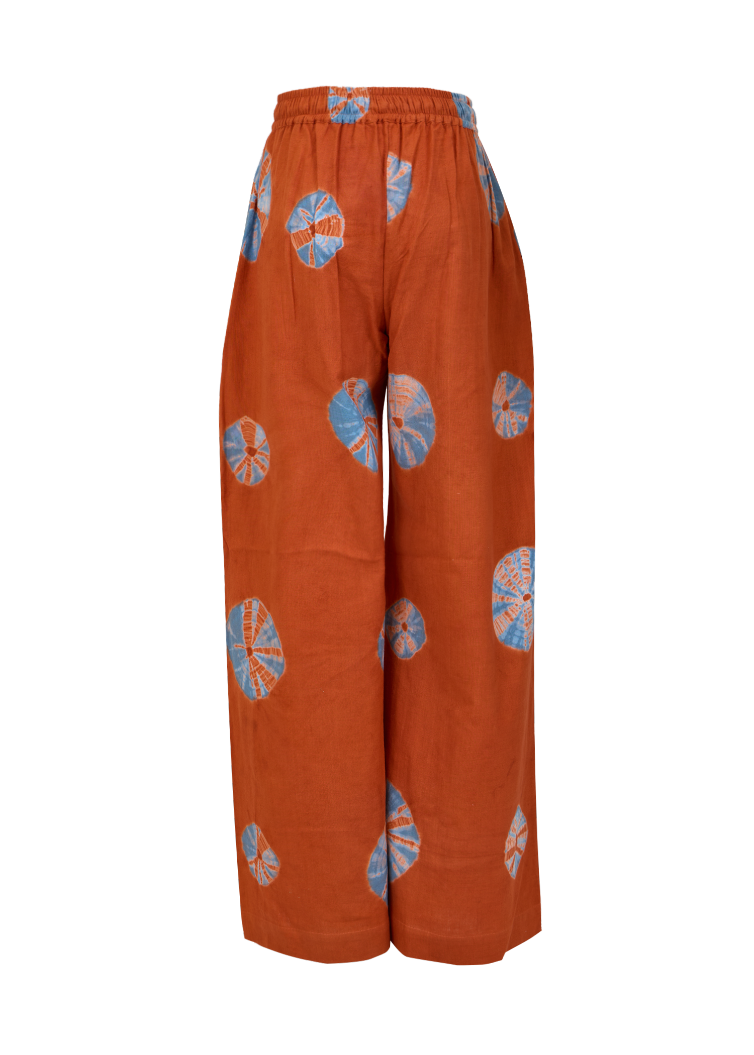 These wide-leg elastic waist pants features a mix of Shibori and Bandhej tie-dye techniques. Playful yet artisanal, they pair effortlessly with the matching top.