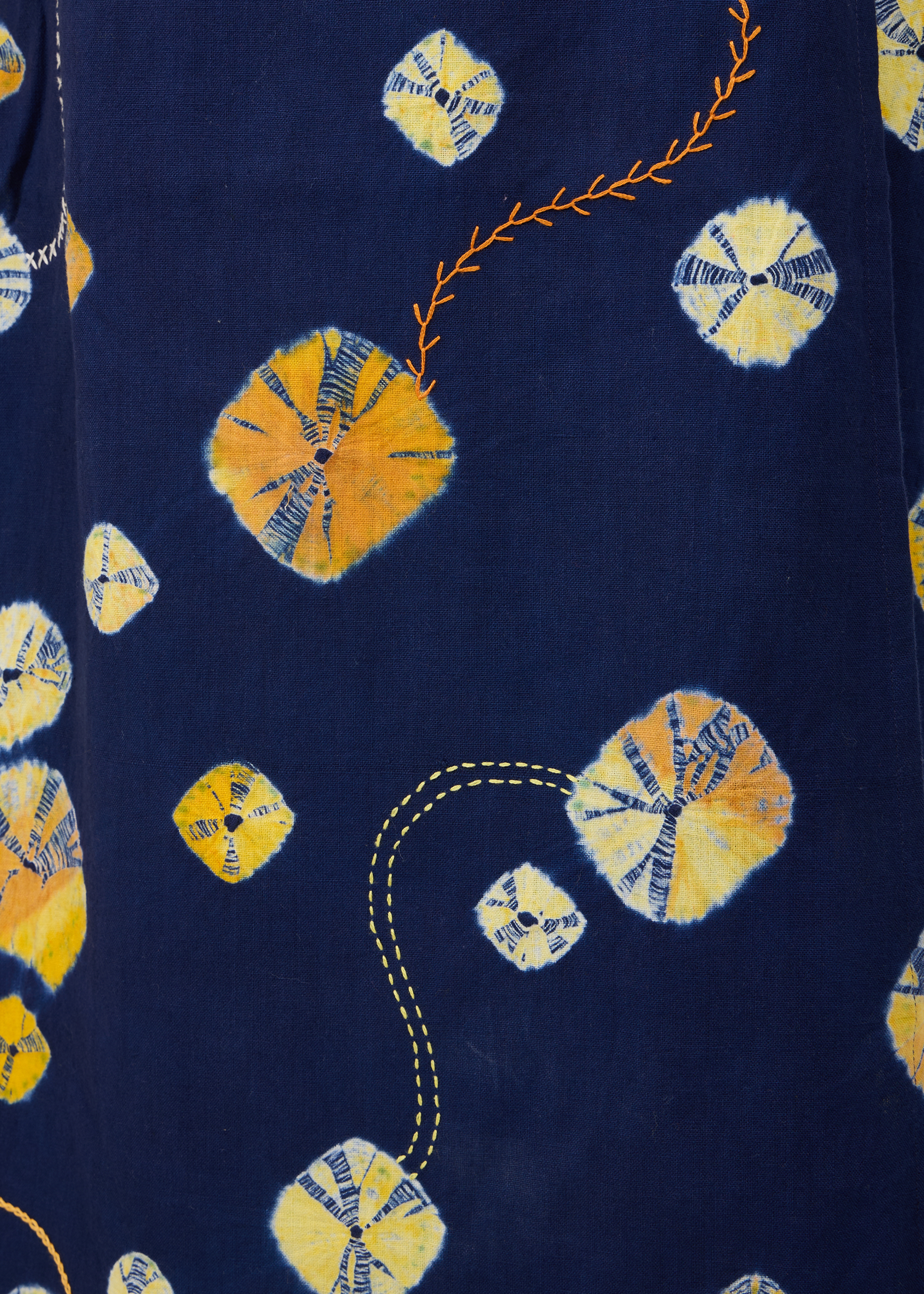 This garment was made in India using a sustainable approach and require your special care. Slight irregularities in weave or color are natural, reflecting the artisanal process. Natural dyes fade gradually with each wash, we recommend limiting cleaning to preserve the colors and embroideries.